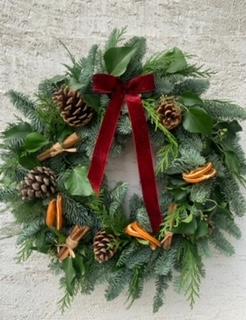 You are invited to our family and friends Wreath Making event. Come and make a wreath and join us in a relaxed gathering around the fire, have a mulled drink and treat and go home with a wreath made by your own hands.